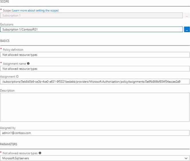 - A . You are prevented from creating Azure SQL servers anywhere in Subscnption1.