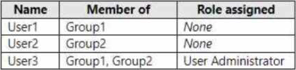 You have a Microsoft Entra tenant named contoso.onmicrosoft.com that contains the users shown in the following table.