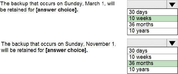 The yearly backup point occurs to 1 March and its retention period is 10 years.