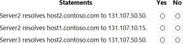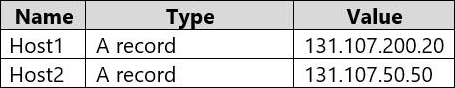 You have an Azure private DNS zone named contoso.com that has a virtual network link to VNET2 and the records shown in the following table.