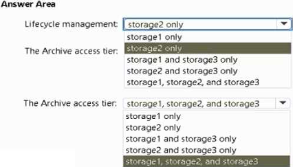 You need to identify which storage accounts support lifecycle management, and which storage accounts support moving data to the Archive access tier.