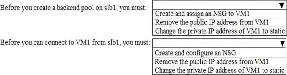 Which changes should you apply to VM1 as you configure slb1? To answer, select the appropriate options in the answer area. NOTE: Each correct selection is worth one point.
