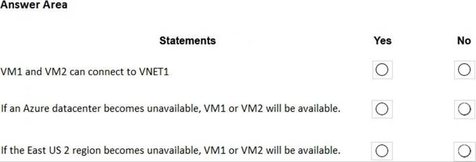 You have an Azure subscription that contains a virtual network named VNET in the East Us 2 region. A network interface named VM1-NI is connected to VNET1.