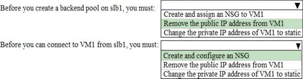 Which changes should you apply to VM1 as you configure slb1? To answer, select the appropriate options in the answer area. NOTE: Each correct selection is worth one point.