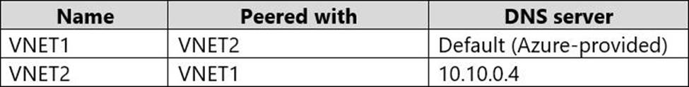 You have an Azure private DNS zone named contoso.com that has a virtual network link to VNET2 and the records shown in the following table.