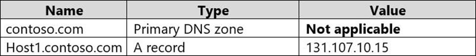 Server1 is a DNS server that contains the resources shown in the following table.