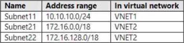 You have an Azure subscription that contains the virtual networks shown in the following table.