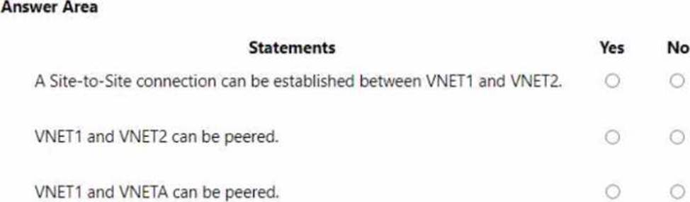 For each of the following statements, select Yes if the statement is true. Otherwise, select No. NOTE: Each correct selection is worth one point.