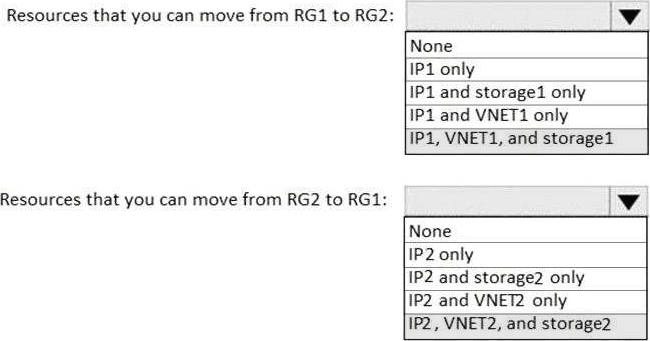 You need to identify which resources you can move from RG1 to RG2, and which resources you can move from RG2 to RG1.