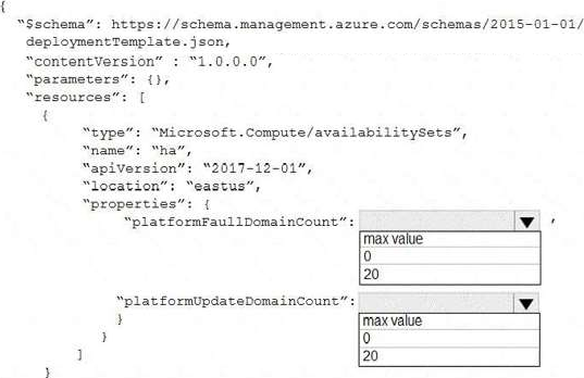 How should you configure the template? To answer, select the appropriate options in the answer area. NOTE: Each correct selection is worth one point.