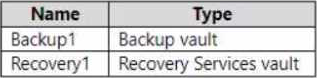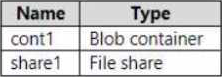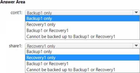 To which vault can you back up cont1 and share1? To answer, select the appropriate options in the answer area. NOTE: Each correct answer is worth one point.