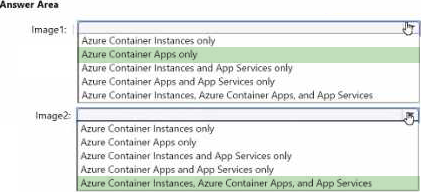 In which services can you run the images? To answer, select the options in the answer area. NOTE: Each correct answer is worth one point.
