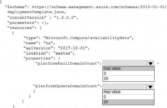 How should you configure the template? To answer, select the appropriate options in the answer area. NOTE: Each correct selection is worth one point.