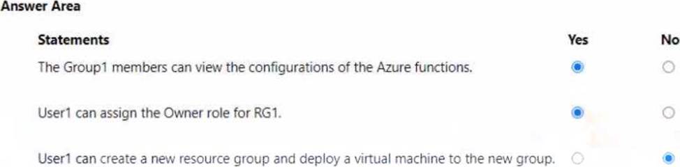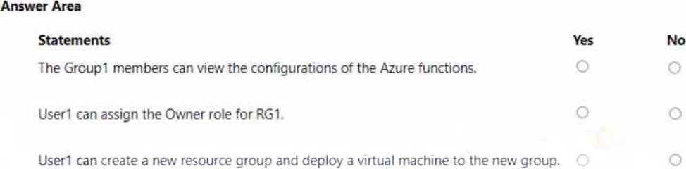 Sub1 and Sub2 are members of MG1. Sub1 contains a resource group named RG1. RG1 contains five Azure functions.