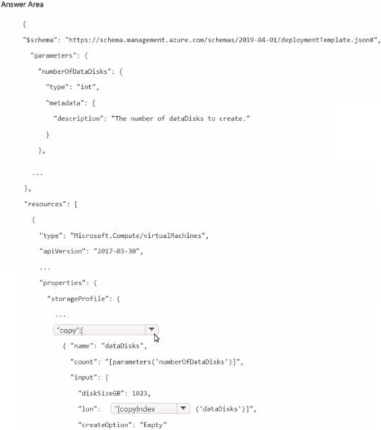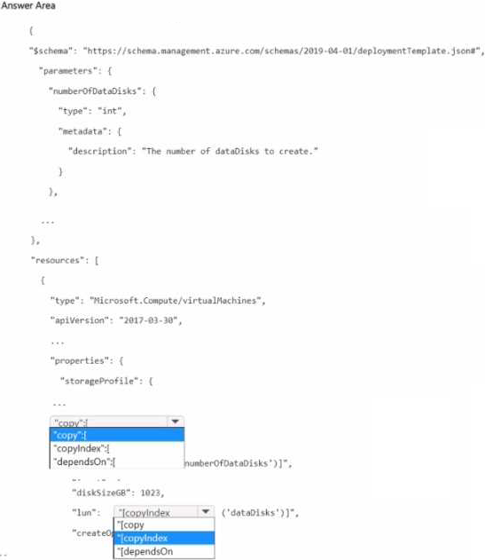 How should you complete the template? To answer, select the appropriate options in the answer area. NOTE: Each correct selection is worth one point.