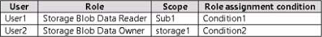 Sub1 contains two users named User1 and User2. Both users are assigned the Reader role at the Sub1 scope.