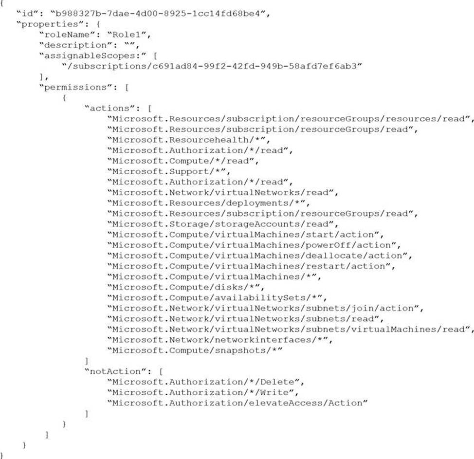 You have the following custom role-based access control (RBAC) role.