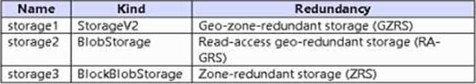 You have an Azure subscription that contains the storage accounts shown in the following table.