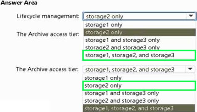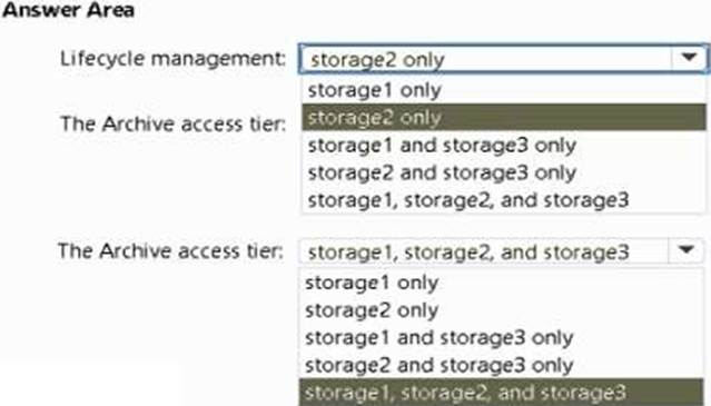 You need to identify which storage accounts support lifecycle management, and which storage accounts support moving data to the Archive access tier.