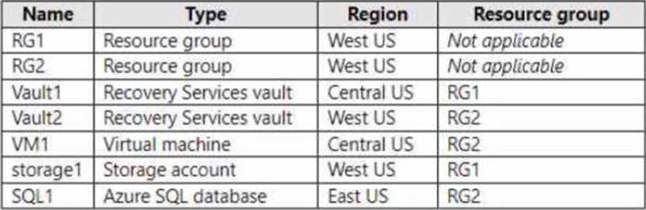 You have an Azure subscription That contains a Recovery Services vault named Vault1.