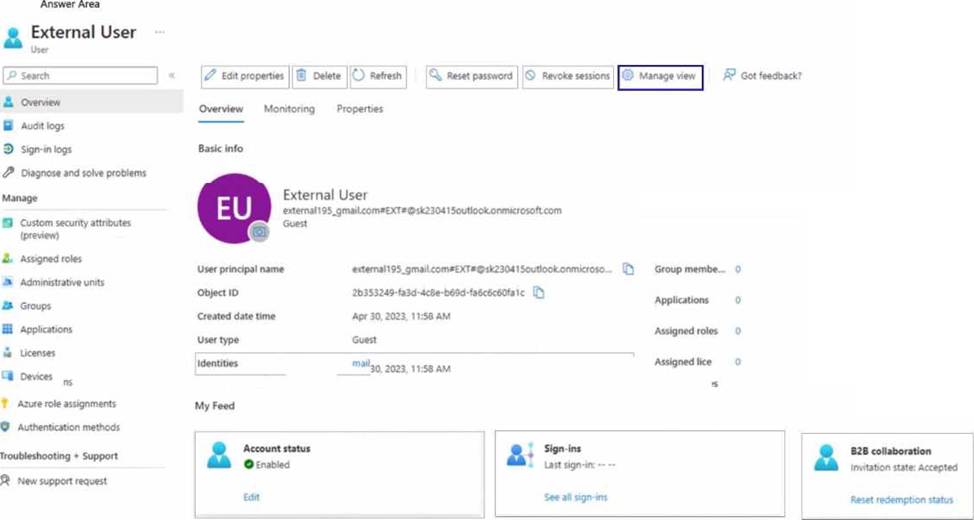You have a Microsoft Entra tenant that contains a user named External User External User authenticates to the tenant by using [email protected].