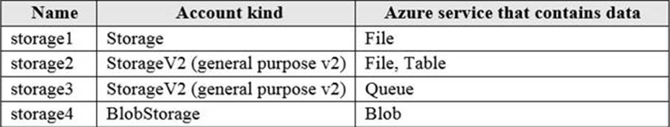 You have an Azure subscription named Subscription1 that contains the storage accounts shown in the following table: