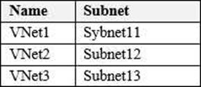 You have an Azure subscription named Subscription1 that contains the virtual networks in the following table.