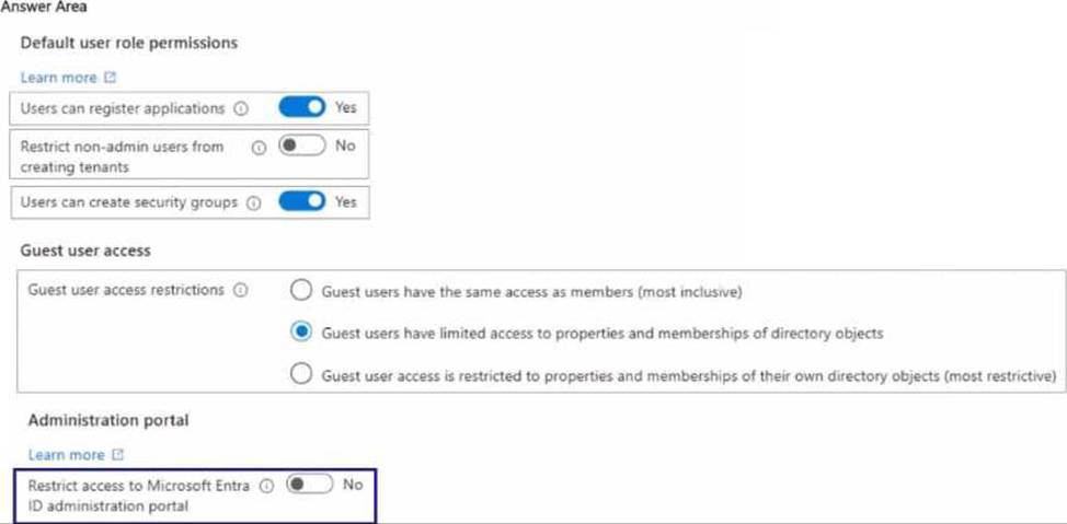 Which two settings should you modify? To answer, select the appropriate settings in the answer area. NOTE: Each correct answer is worth one point.