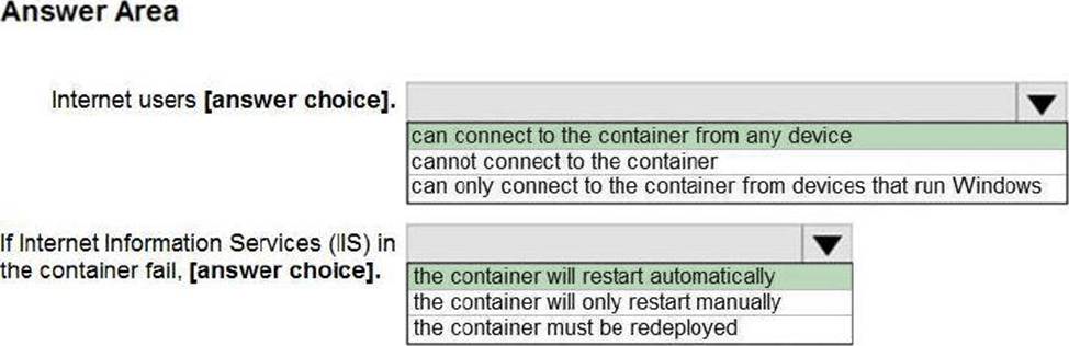 You plan to deploy an Azure container instance by using the following Azure Resource Manager template.