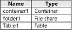 The storage1 account contains the resources shown in the following table.