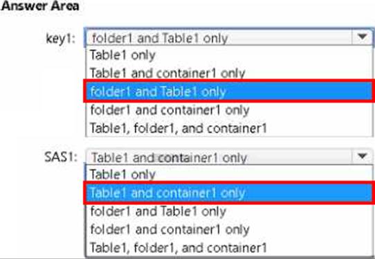 To which resources can User1 write by using SAS1 and key1? To answer, select the appropriate options in the answer area.