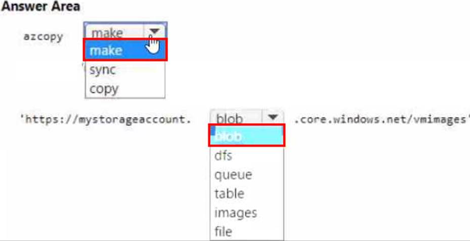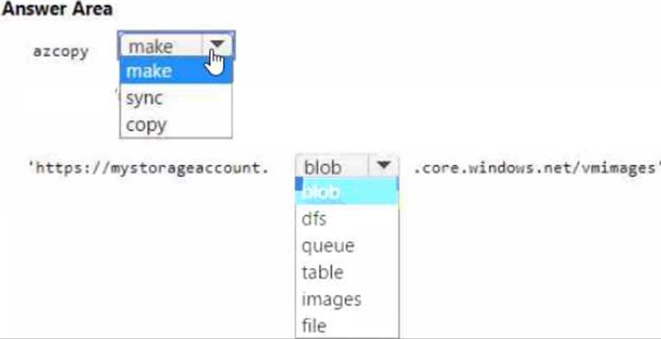 You plan to copy an on-premises virtual machine image to a container named vmimages.