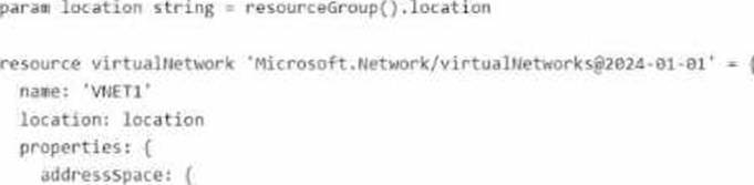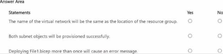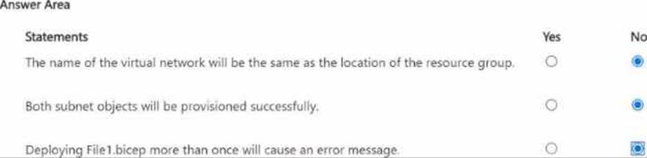 You plan to deploy the following file named File1.bicep.