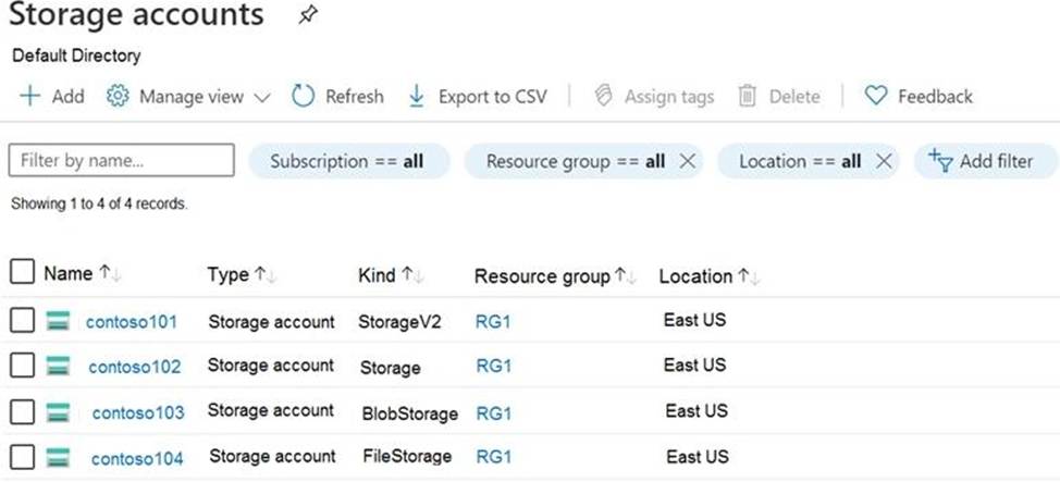 You have an Azure subscription that contains the storage accounts shown in the following exhibit.