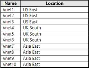 You have an Azure Subscription that contains the virtual networks Shown in the following table.