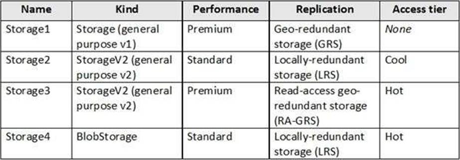 You have an Azure subscription that contains the storage accounts shown in the following table.