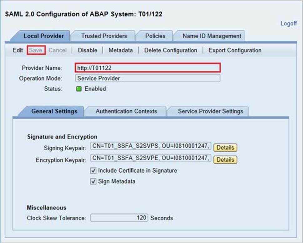 By default, the provider name is in the format <sid><client>. Azure AD expects the name in the format <protocol>://<name>. We recommend that you maintain the provider name as https://<sid><client> so you can configure multiple SAP Fiori ABAP engines in Azure AD.