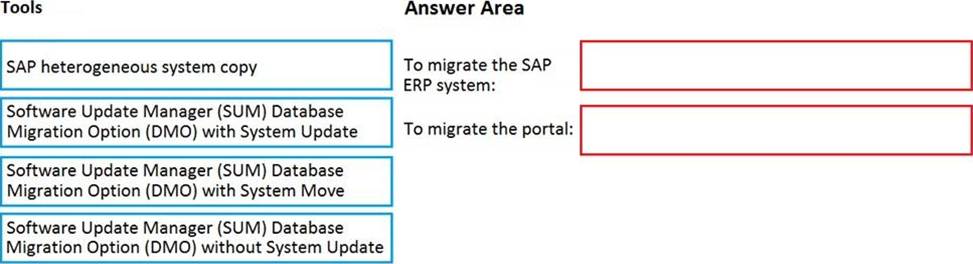 You need to recommend a migration strategy to migrate the SAP ERP system and the portal to Azure.