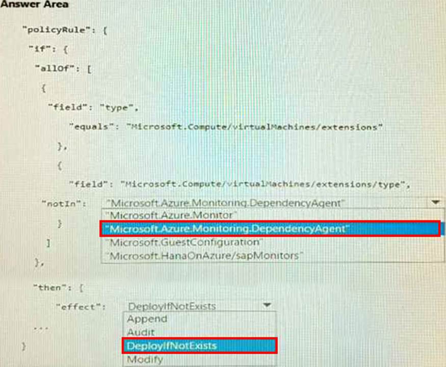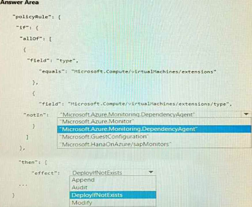 How should you complete the policy? To answer, select the appropriate options in the answer area. NOTE: Each correct selection is worth one point.