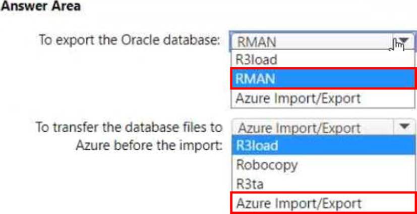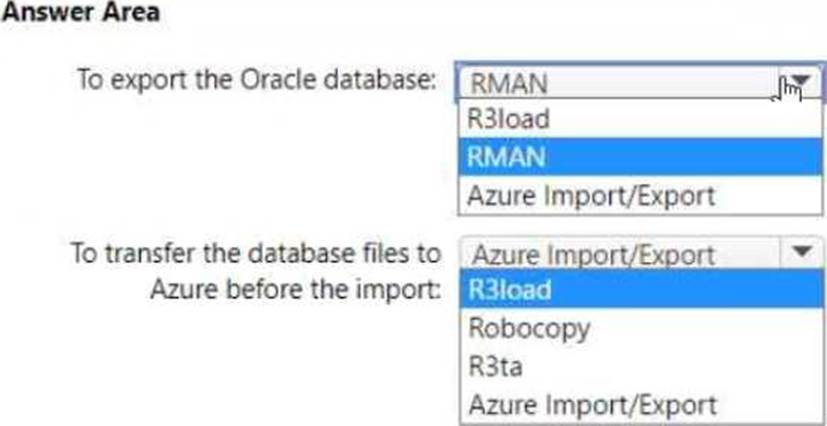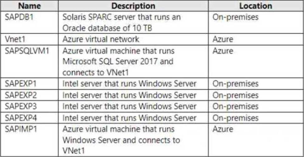 As part of the solution, you need to migrate the on-premises Oracle database to SAPSQLVM1. The solution must minimize how long it will take to complete the data migration.