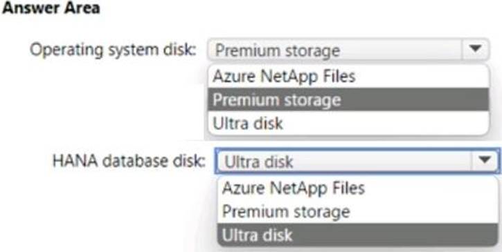 Which type of operating system disk and HANA database disk should you use? To answer, select the appropriate options in the answer area. NOTE Each correct selection is worth one point.