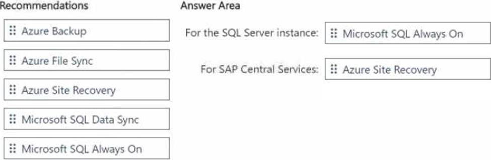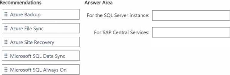 You need to recommend a disaster recovery solution that will enable failover between two Azure regions. The solution must provide the lowest recovery time objective (RTO) for a Microsoft SQL Server instance and SAP Central Services (SCS).