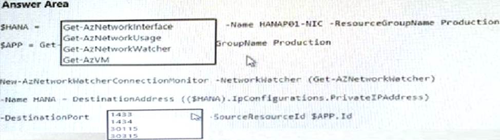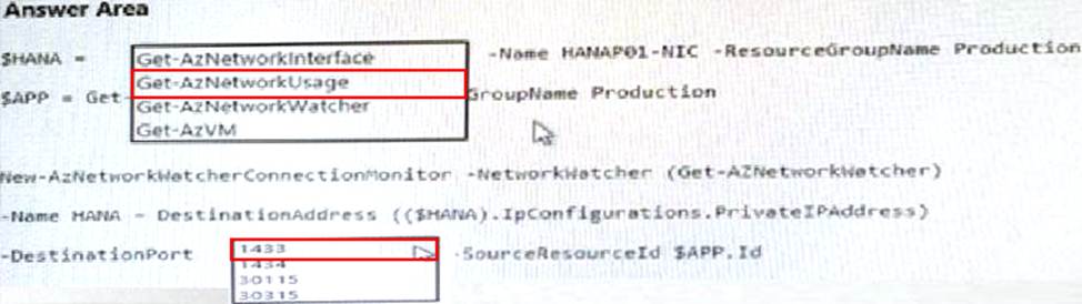 How should you complete the script? To answer, select the appropriate options in the answer are. NOTE: Each correct selection is worth one point.