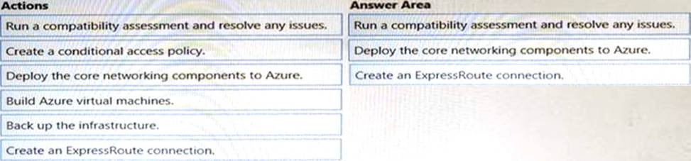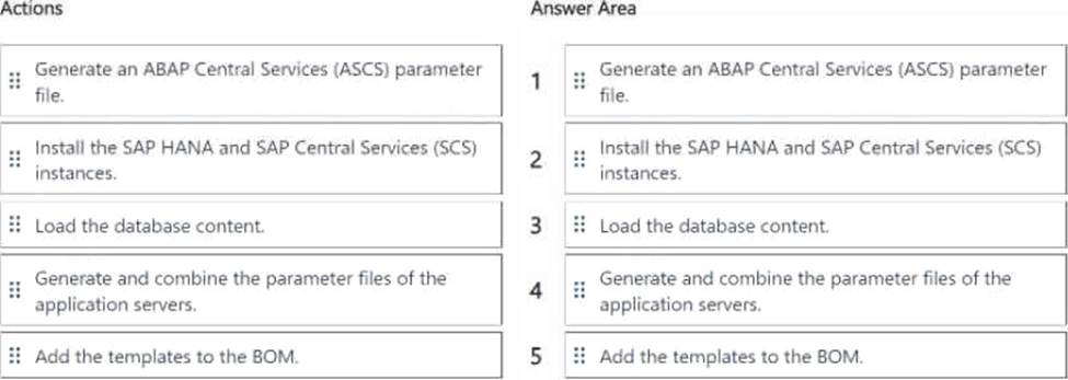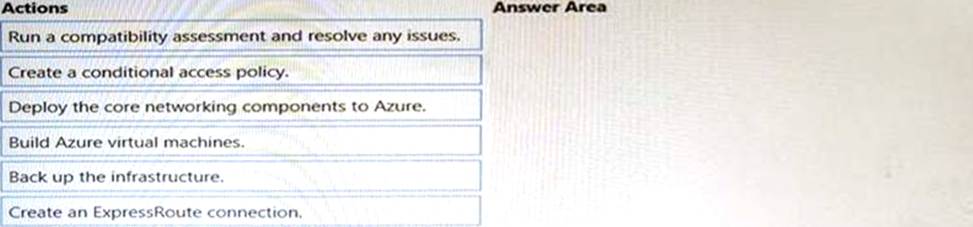 In which order should you perform the actions? To answer, move all actions from the list of actions to the answer area and arrange them in the correct order.