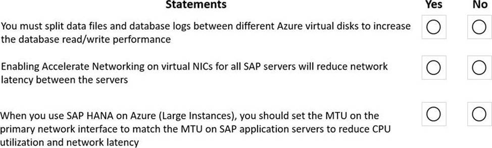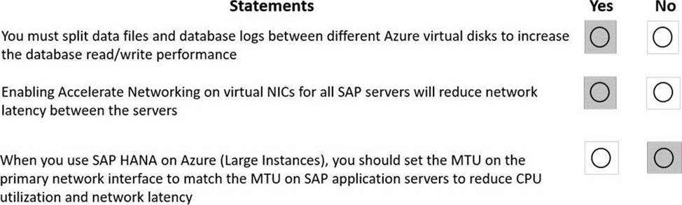 For each of the following statements, select Yes if the statement is true. Otherwise, select No. NOTE: Each correct selection is worth one point.