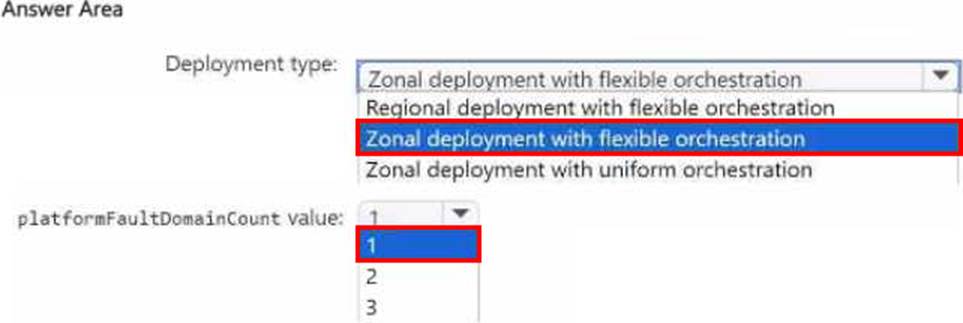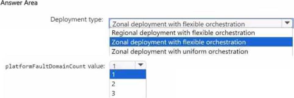 You need to recommend which type of deployment and which platformFaultDomainCount value to use. The solution must maximize the availability of the system.