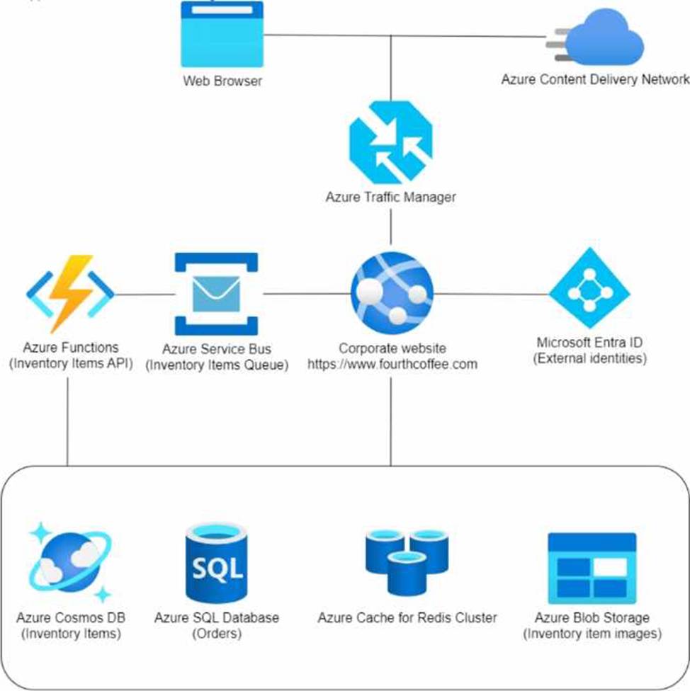 • The Inventory Items API must securely access the Azure Cosmos DB data.
