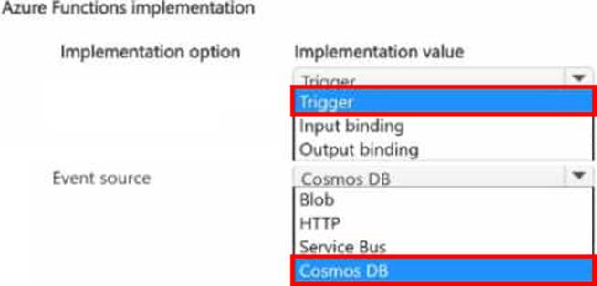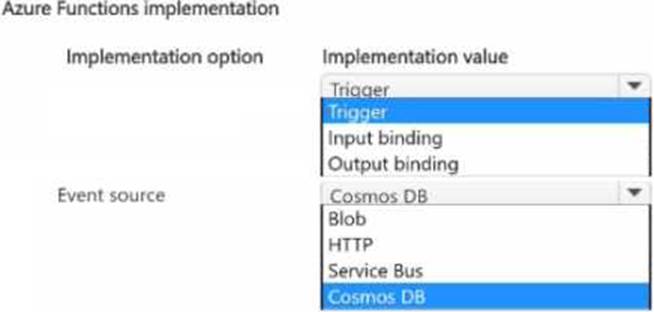 How should you implement the function? To answer, select the appropriate options in the answer area. NOTE: Each correct selection is worth one point.