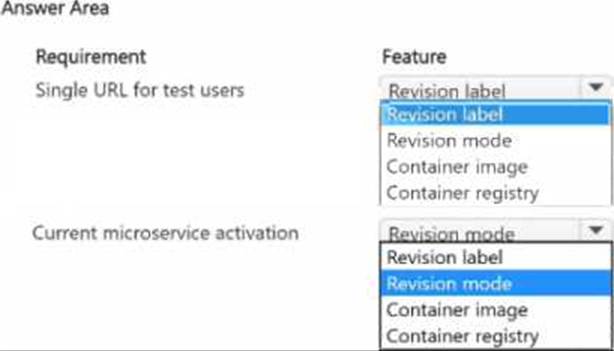 You are developing several microservices to run on Azure Container Apps. External HTTP ingress traffic has been enabled for the microservices. A deployed microservice must be updated to allow users to test new features.