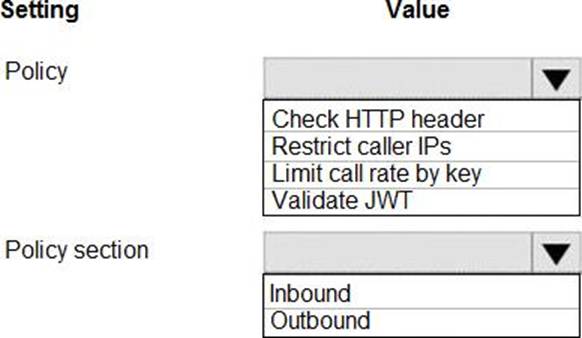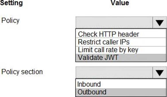 Which policy values should you use? To answer, select the appropriate options in the answer area. NOTE: Each correct selection is worth one point.